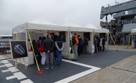 L’institut de l’océan, en coopération avec la Marine Nationale, le consortium Plankton Planet, et l’IFREMER a organisé une visite pédagogique sur le plancton à bord du BASM La Garonne. Plus de 450 personnes ainsi visité nos ateliers. Parmi eux, de nombreux enfants ont effectué des manipulations ludiques sur la vie invisible des océans grâce notamment au planktoscope, un microscope « low cost » développé par Plankton Planet.