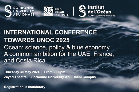 Sorbonne University Abu Dhabi Ocean Institute is organizing its first international Ocean Conference Towards UNOC 2025, Ocean: science, policy & blue economy, a common ambition for the UAE, France, and Costa Rica.